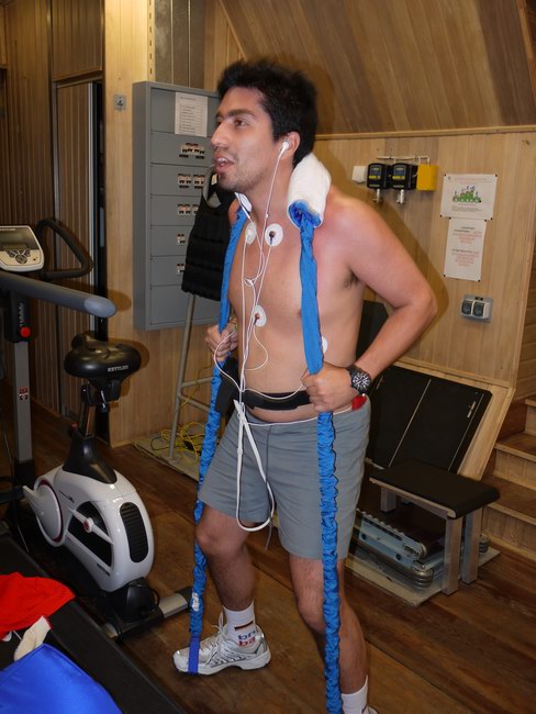 Diego is carrying out strength training with on-board espanders. photo: IBMP