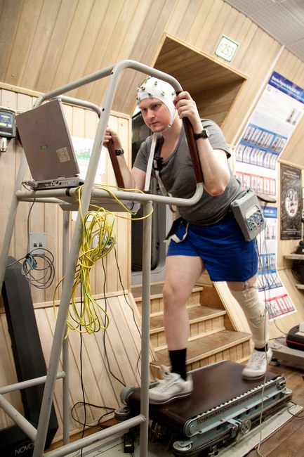 During first two month of the experiment (1-66 day) all crewmembers carried out the complex of strength trainings: each group used their own program. After final testing on the 69th and 70th experimental days the crew proceeded to the next training cycle – complex of aerobic exercises. Aerobic complex will finish on the 135th day of the experiment (there will be next testing on this day). And after that strength complex will start again according to the next training program.