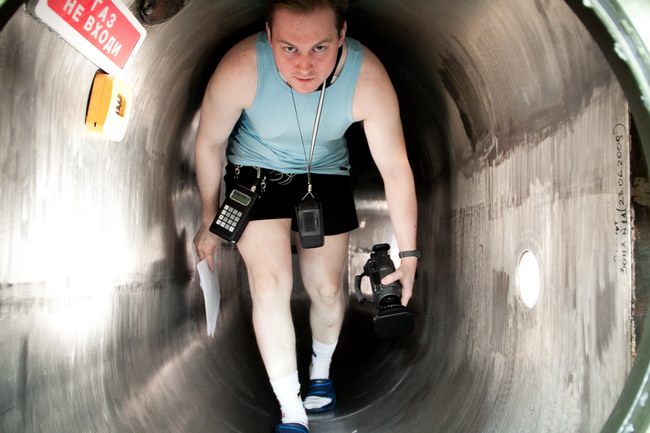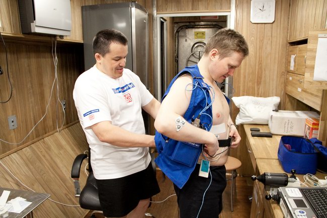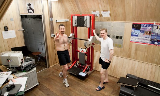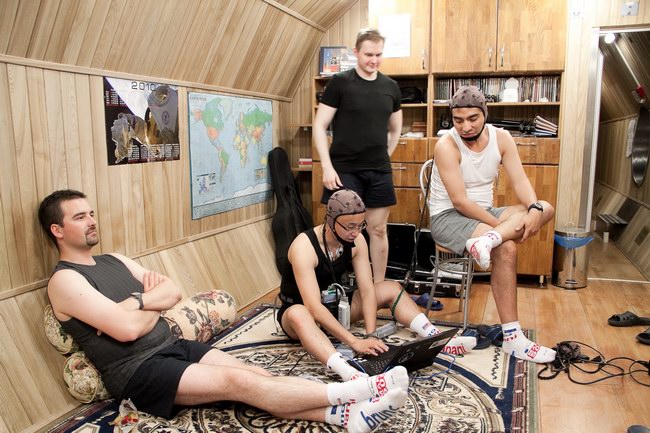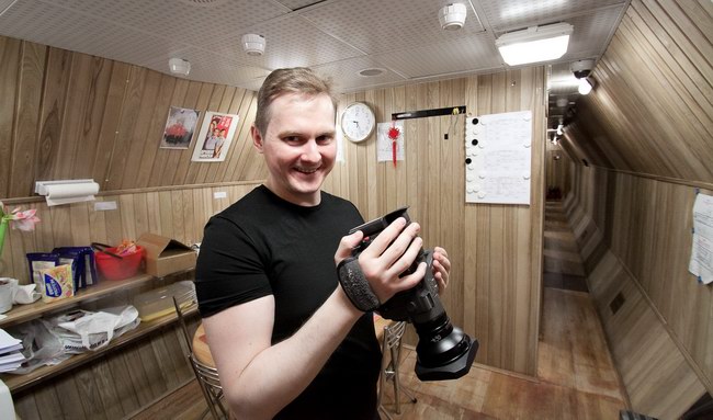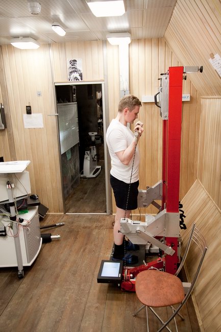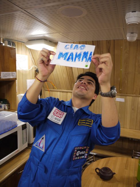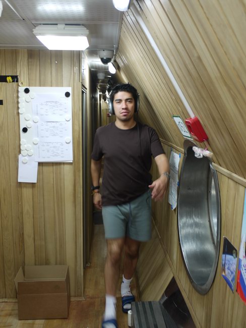 Sasha in passage between the residential and medical modules