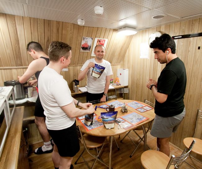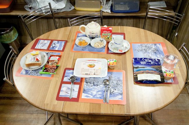 The average daily ration of one crew member on a diet Dr. Tize. From left to right - breakfast, lunch and dinner.
