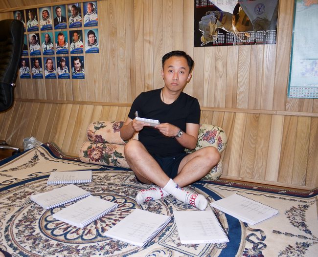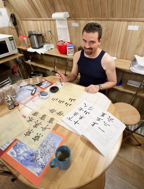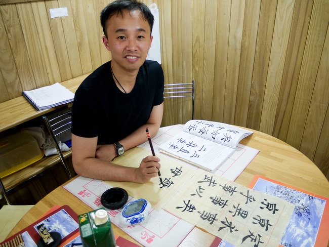 Wang teaches Roman to write hieroglyphs