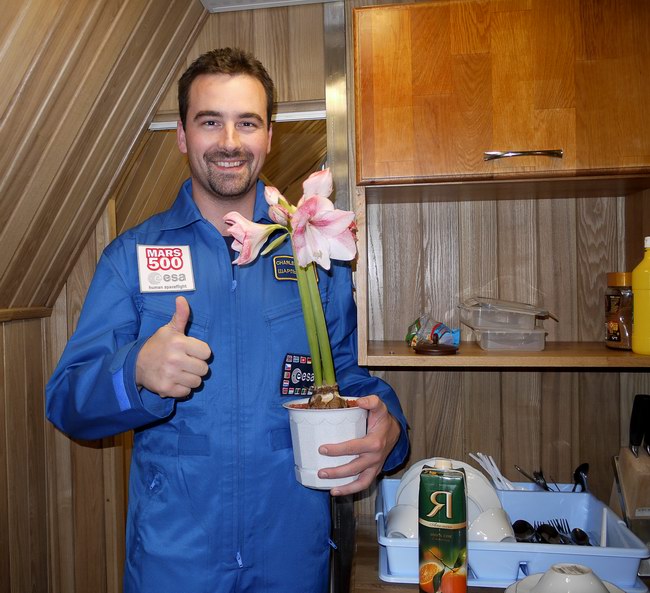 Roman with flower Hippeástrum