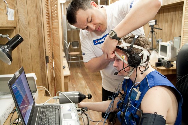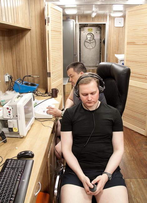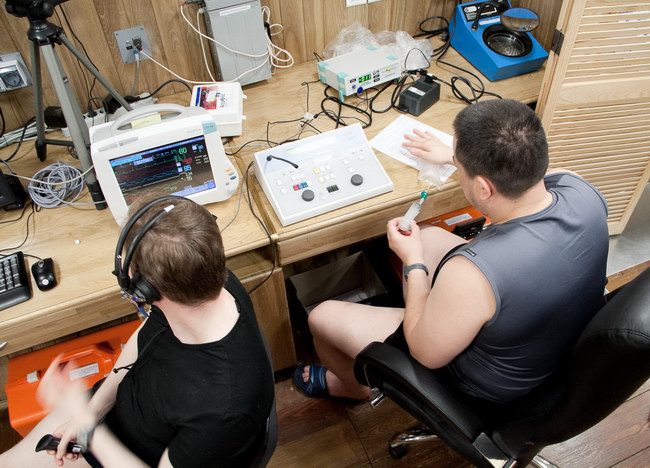 Sukhrob carry out audiometry on Sasha