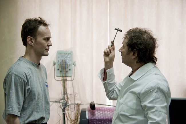 Невропатолог проверяет рефлексы.