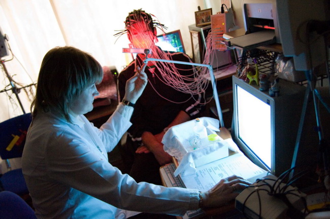 Невропатолог снимает данные ЭЭГ
