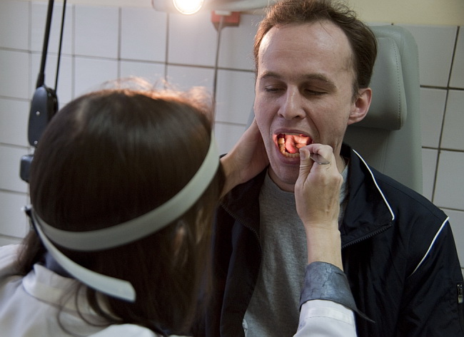 На приеме у отоларинголога.