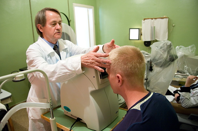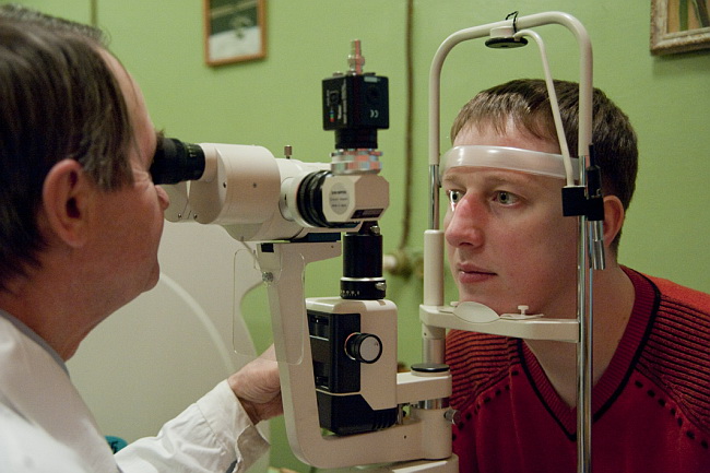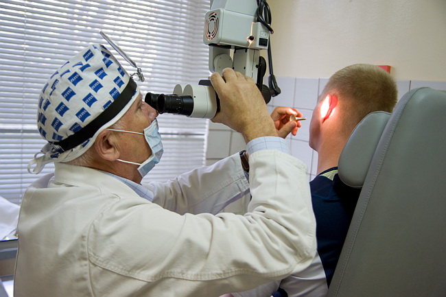 Окулист проверяет состояние глазного дна.