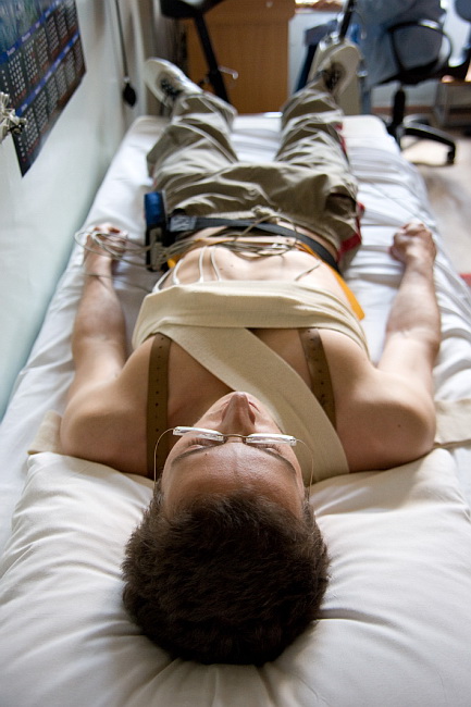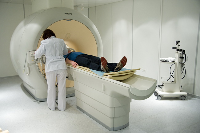 Испытателю проводят МРТ-диагностику.