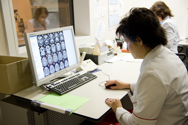 Врач изучает МРТ-данные.