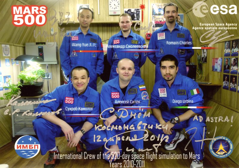 Поздравление с днем космонавтики с автографами членов экипажа "Марс-500"