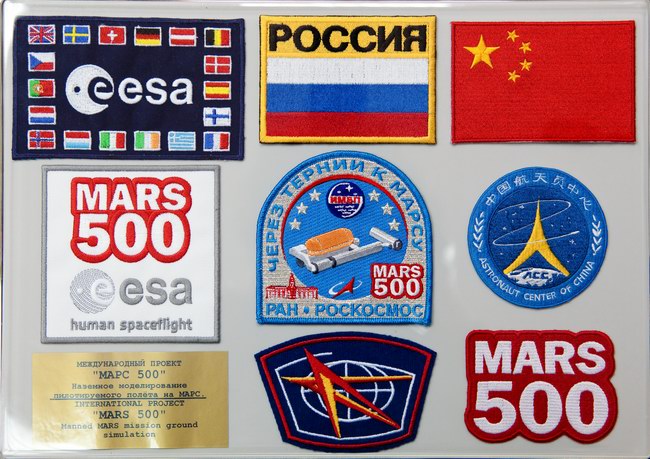 Сувенирный набор символики "Марс-500" и нашивок участников проекта.