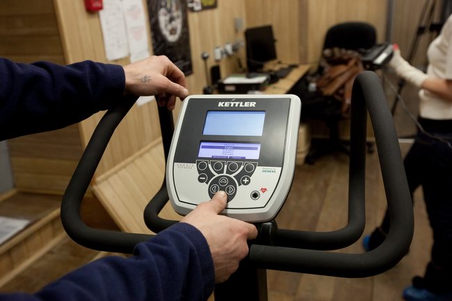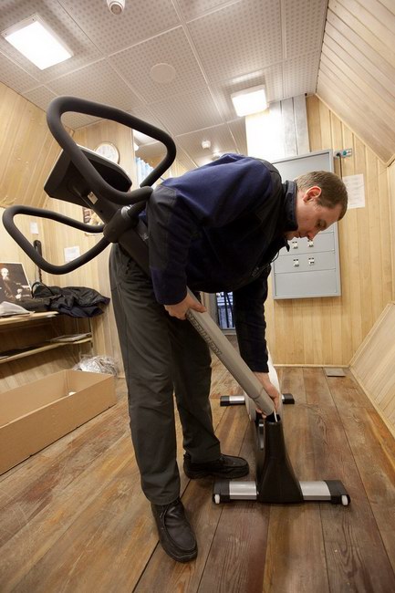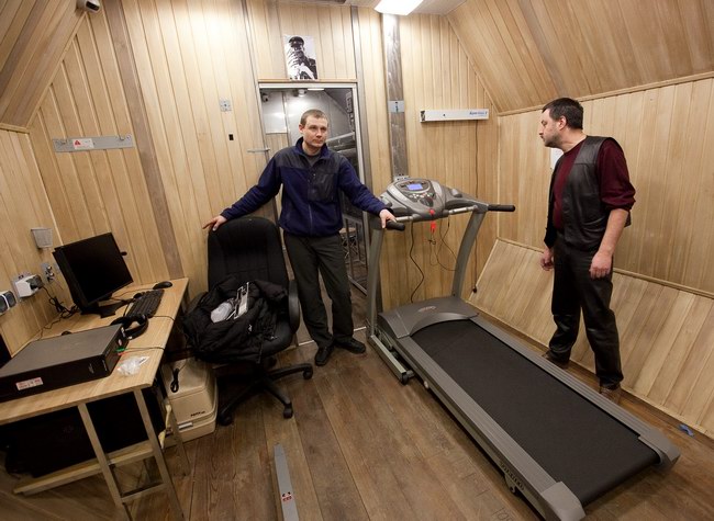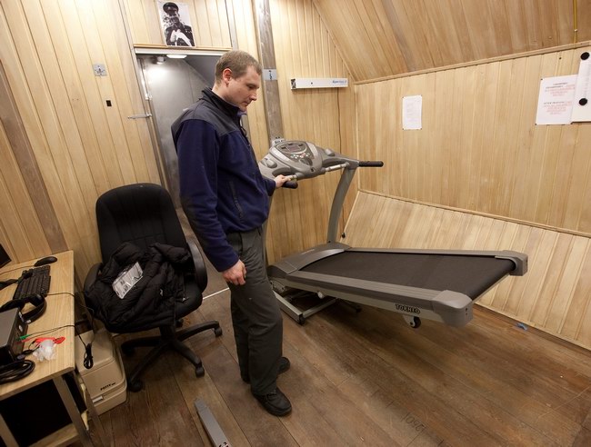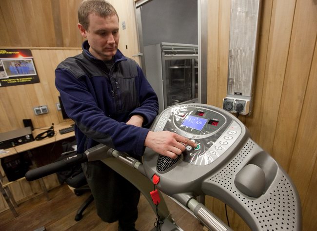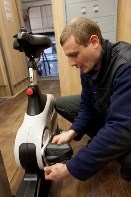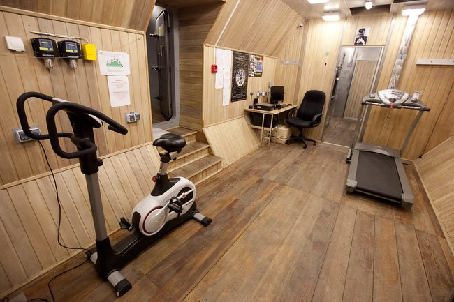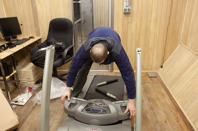 Установка велотренажера и беговой дорожки в модуле ЭУ-250. Тренажеры поставлены компанией "Спортмастер"