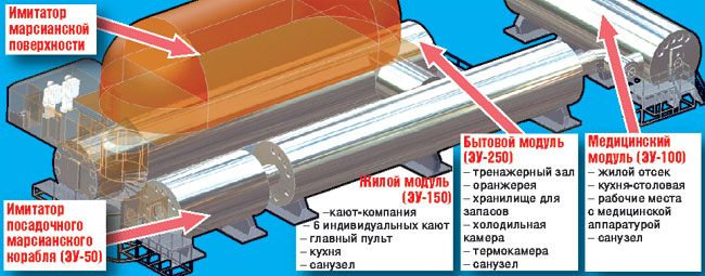 Макет звездолета будет состоять из четырех герметических сообщающихся между собой цилиндрических модулей, покрытых специальными изоляциями.