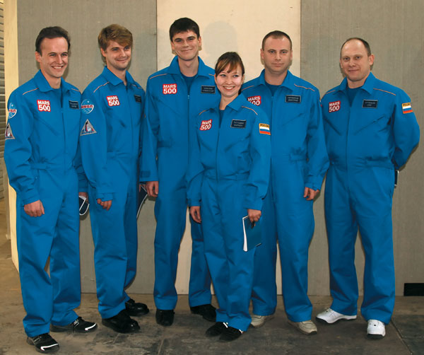 Экипаж «Марса-500»: Сергей Рязанский, Антон Артамонов, Александр Ковалев, Марина Тугушева, Дмитрий Перфилов и Олег Артемьев |