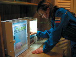 – Да, у нас были две оранжереи, в одной из них выращивался горох, в другой – салат. Эксперимент называется «Микро-Лада». Вообще у «Микро-Лады» прозрачная дверь, и за ней ты видишь растение. Но здесь эта дверца была заклеена непрозрачной пленкой, и на ней стоял датчик открытия дверцы (фиксирует каждое ее открывание). То есть исследователям было интересно узнать: насколько растения важны для экипажа, насколько часто люди ими интересуются, как часто открывают оранжерею.